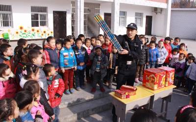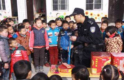 1月19日,竹山县公安局宝丰派出所民警在宝丰镇曹家湾小学为孩子们上正确燃放烟花爆竹的安全教育课。每年春节,由于不正确无保护的燃放烟花爆竹容易对小孩儿造成伤害,酿成火灾隐患事故也屡见不鲜。寒假之前,该所民警深入宝丰镇各中小学幼儿园,把正确燃放烟花爆竹作为寒假安全防范教育的重要一课,通过讲解演示教给学生掌握燃放烟花爆竹的正确方法,以及出现意外时如何现场进行自救。
