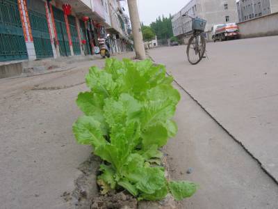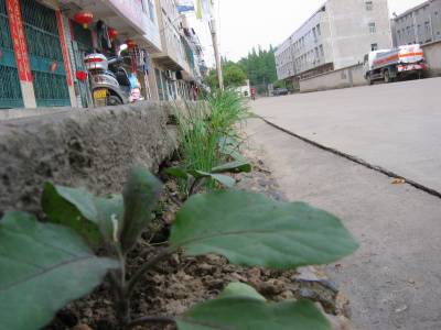 《见缝插”菜”》人们都知道”见缝插针”,可在云梦开发路,笔者5月10日见到这里的几户居民却是”见缝插菜”,他们在自家门前与”开发路”的不到一拳头窄,有的甚至只有两指窄的小小的一条缝隙中,栽种茄子、辣椒、韭菜、白菜等时令蔬菜,且这些蔬菜长得格外茂盛。据这里的居民讲,他们在这样的窄窄的小缝隙中栽种了几年的蔬菜,且年年丰收,环保绿化又充分利用,且不影响交通,令路过的人惊叹不已!