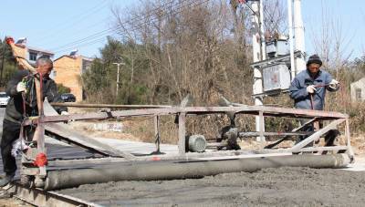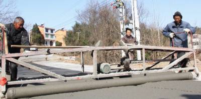 安陆市王义贞镇是该市西北边陲老区镇,近几年来,该镇把解决村民行路难,孩子上学难,农产品运输难作为工作的重点,共投资6000余万元,兴修村组公路306公里,使全镇90%的通组道路成为水泥路,从而极大地改善了村民的出行和农产品的运输等交通瓶颈问题。图为1月21日,施工人员正在王义贞镇唐僧村修建连通茶场的公路。 (本报视界网 王代金 摄影 电话13986495112)