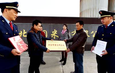 2015年1月21日,南漳县工商局将省政府授予的“守合同重信用企业”匾牌送到梅园米业有限公司。梅园米业公司按照国务院社会信用体系建设规划纲要和省委、省政府关于建设“信用湖北”的要求,严格自律,诚实守信,依法经营。在省工商局组织的“湖北省守合同重信用企业”考核中,通过了2012—2013年度“湖北省守合同重信用企业”。 通讯员 光东 刘凌 记者 熊明银 摄