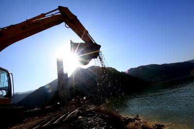 1月21日,挖掘机在十竹路竹山县文峰乡太和村化口大桥处清理桩基淤泥。当日,全长282米的化口大桥完成最后一根桩基浇灌,工程转入桥梁上部构造作业。按照计划,化口大桥和沥青面层铺设将于6月底完工,竹山段22公里工程将于7月底建成通车。十竹路起于十堰城区,终点至竹山县城,全长101公里,途径十堰张湾区、房县、竹山。整个项目建成后,十堰城区至竹山县城的车程将缩短约一个小时。(视界网 章磊 程用国 摄)