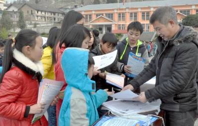 1月20日,咸丰县公安局交警大队联合县运管部门共同开展“寒假平安”安全进校园活动。(图为交警和运管工作人员在进行安全宣传教育的情景)