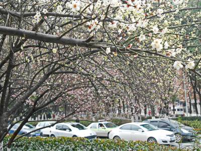 2015年1月以来,湖北省武汉市的平均气温为5.6℃,最高气温19.3℃,仅次于2002年同期气温,是1961年后的54年来同期第二暖高温,而且该市降水量也较常年偏少八成。冬暖如春的江城,常年在2月盛开的红梅,这个冬天早于往年半个月盛开。今年武汉的冬天,己被春天穿越了!24日,在江汉区唐家墩小森林里,白、浅绿、水红等三色梅花,同时在街头争春花枝俏。