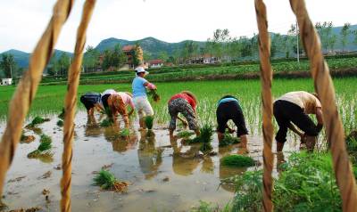 5月9日,在武穴市大法寺镇大屋雷村的农田,犁耙耕牛的吆喝声此起彼伏,当地群众正抓住雨后水田有水的有利时机忙着整地、施肥、起秧、插秧,呈现出一派忙碌抛插早稻的热闹景象。本报视界网刘飞摄
