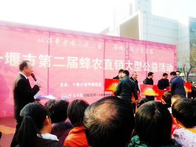 23日,十堰首届农博会蜂农直销活动在六堰人民广场持续火爆进行,双休的市民来到农博会现场,畅游在170余个展位之间品尝、对比,选购称心如意的优质年货和蜂蜜。十堰地处秦巴山区,四季有花,光热资源丰富,历来就是蜂蜜的主产地,有着悠久的养蜂传统。由于“躲在深山人不知”,市民很少品尝到本地优质蜂蜜。为了让消费者买到放心的蜂蜜,同时解决蜂农卖蜜难的问题,十堰日报传媒集团、十堰市蜂伯安蜂业专业合作社联合组织开展了此次蜂农直销大型公益活动,搭建蜂农与消费者面对面的直销平台。图为市民在选购自己钟意的蜂蜜和我与蜂农直销有奖征文颁奖现场。