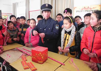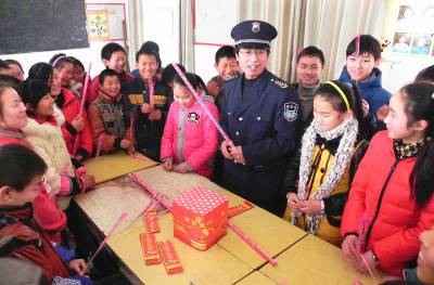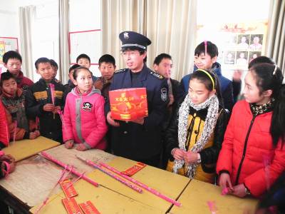 快乐度春节 安全来相伴 1月26日,十堰市郧阳区青曲镇初级中学的保安正在向学生讲解燃放烟花爆竹的正确方法。为确保学生度过一个快乐、安全的假期,十堰市郧阳区各中小学校开展“快乐度春节,安全来相伴”专题教育活动,邀请保安走进课堂为学生上安全课,讲解安全燃放烟花爆竹、交通安全等知识,提高学生的安全意识和自防自救能力。 (视界网 张传郧 摄 湖北省十堰市郧阳区青曲镇初级中学 13635714262 442531)