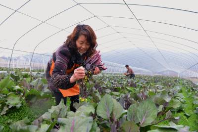 洪山菜薹落户深山 1月26日,咸丰县忠堡镇旭田生态农业蔬菜基地上,菜农正在采摘成熟的洪山菜薹。当天,该基地打包300公斤新鲜菜薹运送到武汉。 咸丰县引进洪山菜薹品种在深山试种,目前,100余亩菜薹陆续采摘,其以无公害、纯天然、品质优良、口感上乘、富含硒元素的特点,在恩施、黔江、武汉等地各大超市成俏销产品,售价最高达30元/公斤,按亩产约4000斤计算,纯利润将超过50万元。(本报视界网图片库 通讯员宋海燕 摄) 联系电话:13402736937