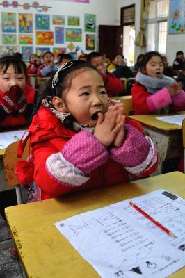 近日,十堰地区遭遇持续低温天气,湖北省郧县柳陂镇中心小学开展“一起搓搓手,好写‘热手’字”活动,通过要求学生“搓搓小手”“小手焐一会儿”,戴防寒手套、温补营养等措施,来抵御寒冷,防冻病冻伤。