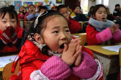 1月27日,老师在上课时,不时地让学生们搓搓小手以免冻病冻伤,这种老“土”的取暖之法近日受到湖北省郧阳区柳陂镇中心小学孩子们的青睐。