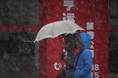 1月27日,十堰市市民冒雪在街头行走。1月27日16时20分,十堰市气象台发布暴雪黄色预警信号:预计十堰大部未来12小时降雪量将达到6毫米以上,会出现对交通有影响的道路结冰,请注意防范。(视界网 章新俊)