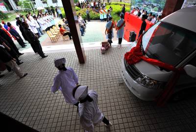 11日,中国农工民主党在宣恩县沙道沟卫生院举行简短的捐赠仪式,现场捐赠一台救护车和价值数万元的药品。省政协、省统战部、农工党湖北省委、省卫生厅代表出席捐赠仪式。本世纪初开始,中国农工民主党对口帮扶消沙道沟镇卫生院,无偿提供了大量药品和医疗器械,改善了山区农民就医条件。(视界网签约摄影师:宋文、田丹摄)
