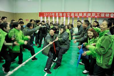 职工趣味运动会迎新春 1月28日,恩施市交通运输系统开展职工趣味运动会,开展滚雪球、花样迎面接力、钻栏接力,2人3足迎面接力、拔河、简易保龄球、掷飞镖等系列项目的比赛,活跃职工体育文化生活,迎接新春佳节的到来。 视界网 谢顺 摄 13277590198