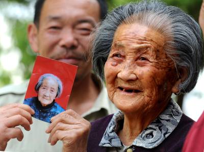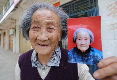 8万老人获赠爱心照11日,安陆市烟店镇96岁的冯长莲老人拿到市老龄办为她拍摄的肖像照笑得合不拢嘴。为了解决农村老人远离市区照相难的问题,市老龄办开展了敬老摄影献爱心公益活动。目前,全市8万名60岁以上的老年人拿到了彩色肖像照。(记者曲河摄)