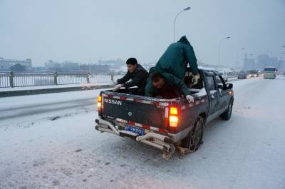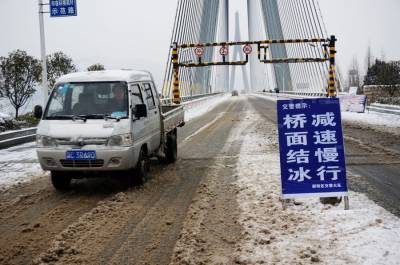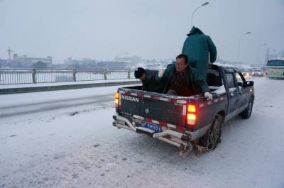 1月28日, 连续两天两夜的降雪使郧阳区白雪茫茫,公路和街道集雪,桥面结冰,交通通行困难。为保障安全通行,各企事业单位禁止机动车上路,私家车尽量停行改坐公交车,所有公交车安装防滑链上路才可上路运行,市管所和交通部门负责结冰桥面撤降雪剂化雪,一切都在安全的前题下才可运行。 视界网周家山 摄