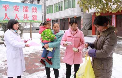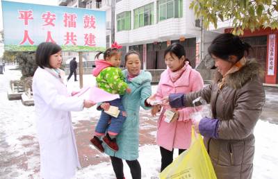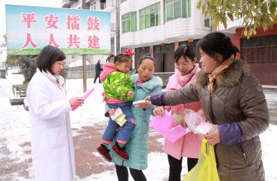 1月28日,竹山县擂鼓镇计生工作人员深入该镇佑城社区为育龄妇女发放人口计生宣传资料和药品、药具。日前,该镇紧抓春节前夕农民工返乡高潮这一大好时机,开展“送政策、送知识、送宣传、送药具、送健康”为主题的“五送”大走访活动,大力倡导“亲情服务、热情服务、友情服务”,促进全镇育龄妇女和计生家庭和睦幸福。