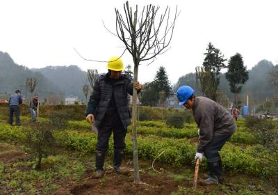 栽种绿色致富树 1月28日,咸丰县白地平村村民正在自家三分田里栽种景观树西湖海棠。 近年来,咸丰立足“因林而富”的发展思路,发动老百姓在房前屋后、山地林地大力栽植楠木、红豆杉、紫薇、桂花等珍稀树种,形成“屋后有林、房前有景”的绿色风景,培植村民增收致富的绿色银行。(本报视界网图片库 通讯员宋海燕摄) 联系电话:13402736937