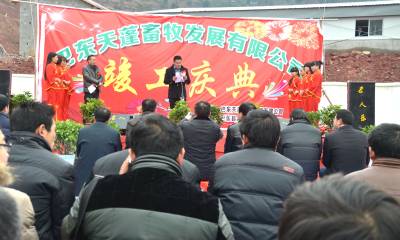 1月29日,巴东天蓬畜牧发展有限公司正在举行竣工庆典仪式。 该公司与世界500强企业泰国正大集团联合,2012年7月开工,投资约4000余万元,建成规模为2400头能繁母猪、年出栏肉猪5万头的养殖基地,为当地养殖企业、农户提供优质仔猪,成为目前恩施规模正大、设备最先进、低能耗、无污染、高效益的养殖企业。(巴东县官渡口镇政府向传辉摄 电话 18963928551)