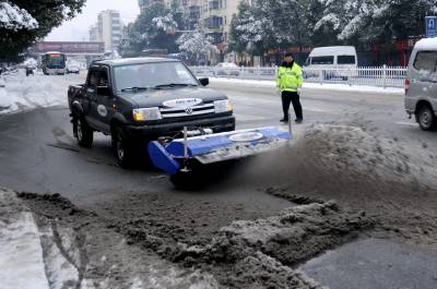 “我们正在使用的这台设备是我们2014年新型研发的皮卡滚刷小型(除雪)设备,主要用于道路的辅路、工业园区的道路清扫。这次因为十堰普降大雪,交通、人们出行受到影响,我们公司就调出了两台设备,一台是我们现在看到的这台小型设备,另一台是大型的原装进口的RBA滚刷除雪设备,用于白浪片区和工业园区的道路清扫,保障人们的出行安全和方便。” 昨日上午,正在现场实施除雪作业的该公司制造运营部副部长唐德江介绍,昨日投入使用的设备均为本土生产的新型除雪机,拥有多项实用新型专利,这也是十堰本土制造的除雪机首次在我市的市政道路上进行除雪实战。此外,根据城区道路的特点,工作人员还为机械除雪作业提供了有针对性的方案,提高工作效率和安全性能。昨日上午,仅一台除雪车就累计清除了上百公里行程的积雪。