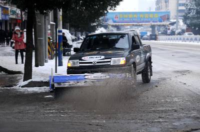 29日上午,由东风斯诺威科技(北京)有限公司十堰分公司连夜改装的两台除雪设备在白浪路和十堰经济技术开发区各工业园实施义务除雪作业,同时该公司连夜为市交通局、园林局等单位安装的5台除雪设备,当天已全部完成调试并赶赴市内清除积雪,这也是我市本土生产的除雪设备首次投入市政道路除雪作业。