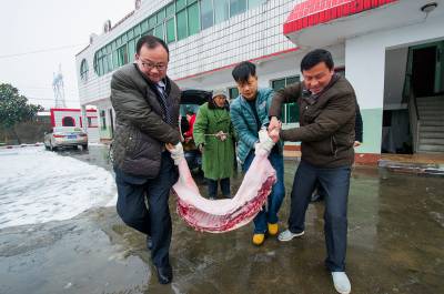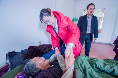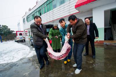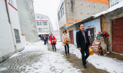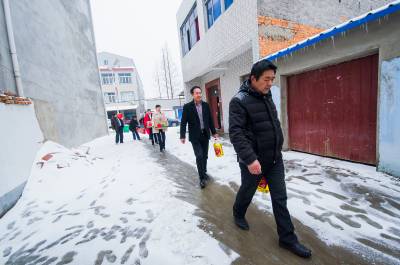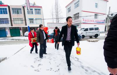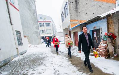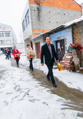 1月29日上午,雪花飞舞,天寒地冻。云梦县义堂镇福利院的孤寡老人们和城关镇西王村的贫困户方小香做梦也没有想到,在这样恶劣的天气里,孝感市人大代表、湖北梦珠大酒店有限公司董事长邹建安会带公司中层干部一行顶风冒雪去慰问他们,为他们送来肉、鱼、水果、米、暖手宝等过冬物资和慰问金,并为老人们清扫了积雪,让他们感受到社会大家庭的温暖。 (王云清 摄)
