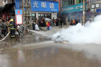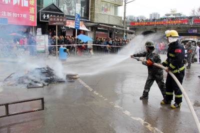 节前应急救援演练防火灾 1月29日,消防队员在进行灭火。 当日,恩施市六角亭办事处在胜利街社区开展消防火灾事故应急救援演练,市消防大队、市人武部、办事处、社区居委会、义务宣传队联合开展疏散、救援,并在救援后开展冬季防火要领、安全消防常识、如何扑救初期火灾等知识的宣传。通过演练,提高市场商户及过往人员的安全防火意识和处理突发火灾事故的应急能力,防范春节期间社区火灾的发生。 视界网 谢顺 杨君丹 摄 恩施市新闻中心记者 谢顺 13277590198
