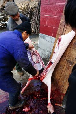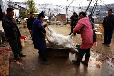 1月29日, 我们慕名来郧阳区梅铺镇前湾村4组来拍当地村民杀年羊的一组镜头。