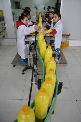 1月31日,三峡库区秭归县泽侬饮品公司生产车间一片繁忙,工人正在加紧生产“秭归橙”饮品。