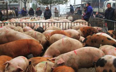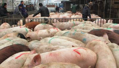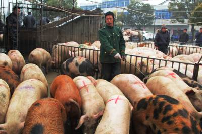 谷城县春节市场生猪产销两旺 1月31日,冷集镇汉江经济园区买卖双方正在进行生猪交易。谷城县去年生猪养殖达到66.3万头。汉江经济园区已成为鄂西北最大的生猪交易集散地,年买卖生猪百万头以上。 视界网马明刚摄