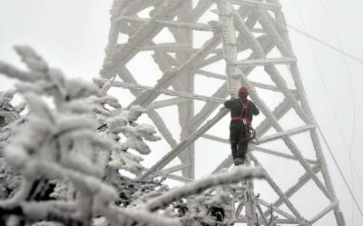 1月31日,国网恩施供电公司抗冰抢险队员铁塔上抢险作业。当天,国网恩施供电公司共出动抢险员工256人次,冒雪开展线路特巡和抢险恢复供电工作。
