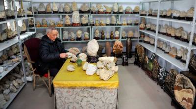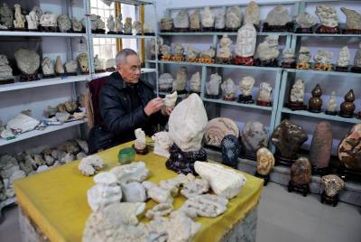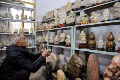 10、游世贵收藏的部分中国云锦石。(2月2日摄)
