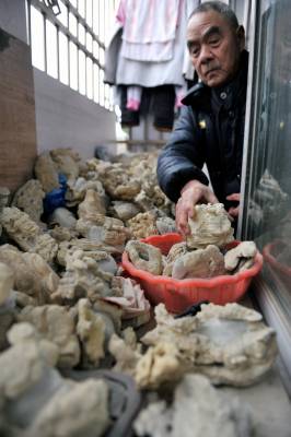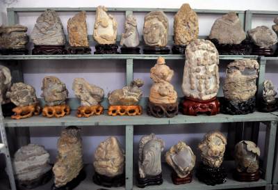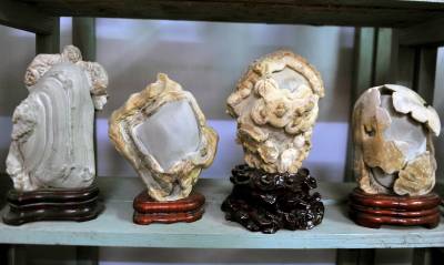 9、游世贵收藏的部分中国云锦石。(2月2日摄)