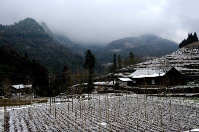 > 雪落高山景如画