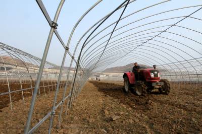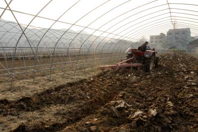 2月1日,房县军店镇军马村蔬菜大棚基地的工人在机耕菜地。该县釆用优恵政策招商引资,建设菜篮子工程,解决群众吃菜难。目前,山东、浙江、福建省客商投资2400多万元,在军店、化龙、白鹤、城关等中部平坝乡镇建设无公害蔬菜大棚基地。据悉,全县发展高山、温室大棚蔬菜14.6万亩,形成了“春提早、夏渡淡、秋延后、冬反季”的周年生产格局,大大满足了群众消费蔬菜的需求。