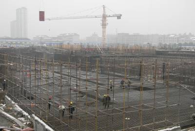 2月3日,在襄州区人民医院新院区建设项目工地上施工人员正在冒着严寒,精心施工。春节前,门诊楼、医技楼、病房楼地下室结构将封顶。