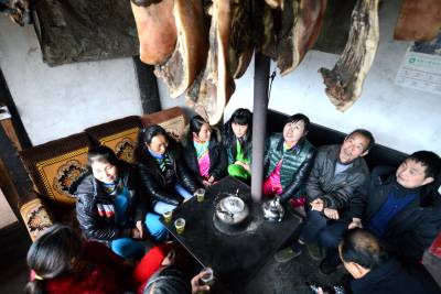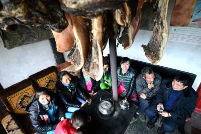 土家山寨年味浓 2月1日晚,咸丰县大路坝区蛇盘溪村民徐定江家里,吃过晚饭的村民正围在火炉边摆“龙门阵”,火炉上方,一块块正在烟熏的腊肉散发出阵阵香味,仿佛在诉说着生活的幸福。 年关将近,土家人纷纷宰杀年猪,将新鲜猪肉用柴火熏制成腊肉。一到傍晚,村民们便三三两两聚在一起,围着柴火叙家常,山寨的年味越来越浓。(视界网 马辉摄)