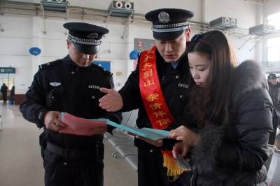 2月4日,2015年春运第一天,武铁麻城警方发动基层所队加大武装巡逻力度,为旅客群众营造安全出行环境,发放《致广大农民工的一封信》、《致大学生的一封信》和安全出行提示卡片,向广大农民工、大学生讲授春运安全出行常识,同时设立便民服务岗,帮扶老弱病残旅客顺利乘车,为旅客营造温馨出行路。