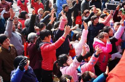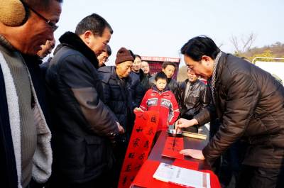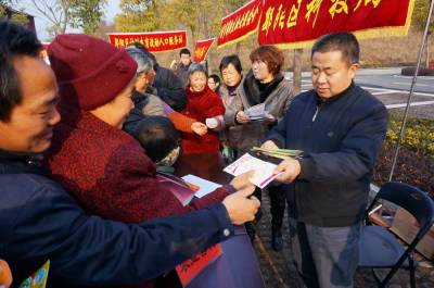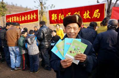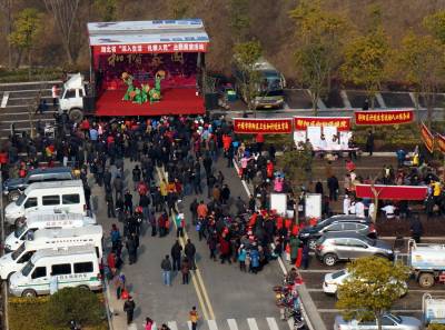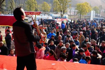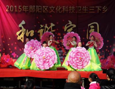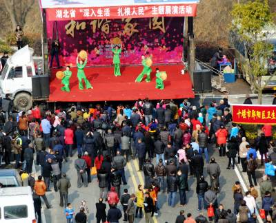 2月4日,郧阳区城关镇堰河村的村民们在子胥湖广场免费领取科技知识书,各类菜种,灯笼,春联和免费体检,并观看了县剧团演出的12个精彩的文艺节目。这是郧阳区区委宣传部组织的深入生活扎根人民为主题的"和谐家园"送祝福的文化,科技,卫生三下乡活动。 视界网周家山 摄
