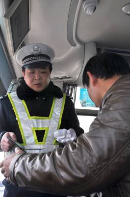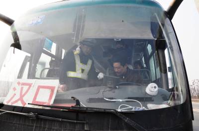 2月4日春运第一天,为了最大限度地满足人民群众的出行需求,让广大群众平安返乡、顺利返程,汉川市公安局交警部门启动了春运道路交通安全管理工作方案,通过巡查,发现汉川客车无超速、无超载,安全设施配备齐全。 签约摄影师 邹开建 赵大平摄 通联:汉川市公安局 电话:13197382491 邮编:431600