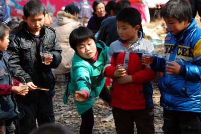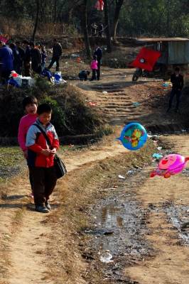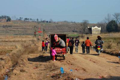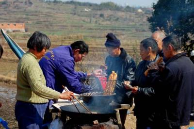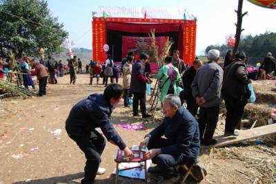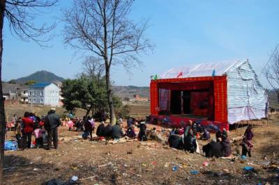 家乡人十分看重祖先坐案,十几年不回家的亲人,在这一天也会千里迢迢的赶回,虔诚的跪拜在他老人家案前,以示尊崇。这个时候也是家乡大团聚的热闹时刻,在村子祖堂的对面,立起了戏台,请上戏班子唱上几天几夜的大戏。我记得家乡唱过二次大戏,每隔16年先祖来家乡坐案,就唱一次大戏。九三年唱过一次,那时我才19岁(时间过的真快),当年家乡经济不好,唱戏开锣没有现在这样大放烟火,只是将黑火药填在一排钢管内,装上引信,嗤嗤点燃,轰响声不绝,燃烧后的烟灰将我们一群年轻人染得漆黑,这样,戏便开锣了。
