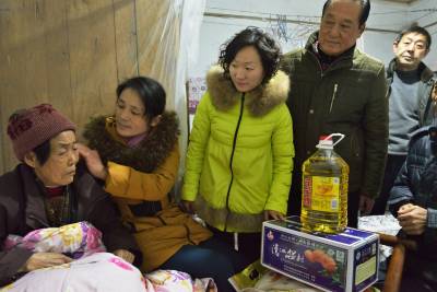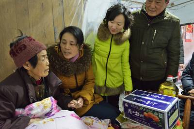 “感谢‘格格’,感谢党!” 2月5日,宜都市枝城镇大同社区网格员冉德兰(左二)与枝城镇吴天祥小组志愿者一道慰问邓志秀(左一)老人。邓志秀老人一个劲的说:“感谢格格,感谢党!”邓志秀今年81岁,因患眼疾几近失明,老伴因摔倒瘫痪在床,生活十分困难。网格员冉德兰在信息采集中发现老人的情况后,及时向社区领导汇报,社区通过组织程序为老人解决了300元慰问金,吴天祥小组志愿者为老人送来了米油等200多元的慰问物资。