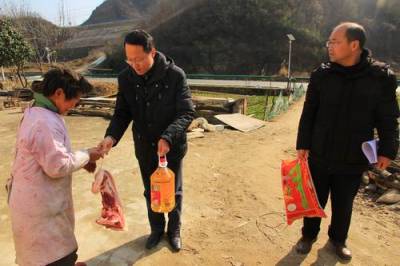 在赵家坪村,扶贫组一行深入子女双双患上侏儒症的李丛有,偏瘫无力行走家的石玉昌及因病致贫的佘立明、姚天明、黄群虎五位村民家中,为他们送上肉、大米、食用油等年货。期间,柯超还与分管的镇领导与村书记亲切交谈,了解村情并一起研究了2015年脱贫计划。