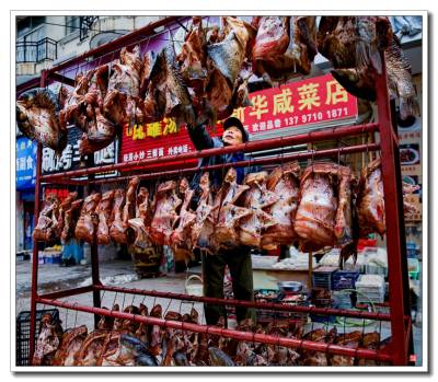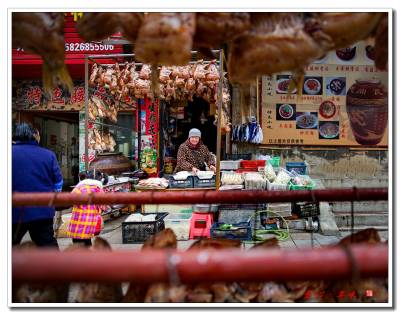 羊年的脚步来了,年味渐浓啦。2015年1月31日,正值周末,雪后初晴,大悟县新华路的咸菜店的两老人,把为儿女们准备的腊货拿到门外挂晾着。真香,好馋人的。