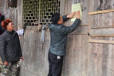 全区在家23干部职工进村入户到人到田块政策宣讲,做到宣讲政策、了解民情“,做到宣讲政策和走访入户必须覆盖到每个村民小组,必须覆盖到全村每户农户,必须覆盖到全村每个村民,包括处出务工人员,必须覆盖到全村每户儿童。做到“五摸清”,必须摸清每户留守儿童情况;必须摸清每户贫贫户家庭的生产、经济来源和贫困原因情况;必须摸清村每个村民小组和农户家庭基础设施建设、经济收入情况;必须摸清90岁以上老人情况;必须摸清“三老”人员情况,即留守老人、高龄老人、孤寡老人。必须保证“六不”。即政策宣讲不漏一户,走访谈心不漏一人,庭园经济发展不少一户,新年农户有新变化不少一家,村容村貌变化不漏一组,文明新风、无封建迷信不少一户。图为工作队给村民大门上张贴《致全首农民朋友一封信》,发放《基本知识手册》和《政策宣传手册》,让宣讲到户到人,让政策深入民心。(本报视界网何吉安)