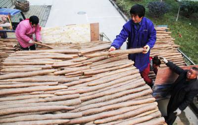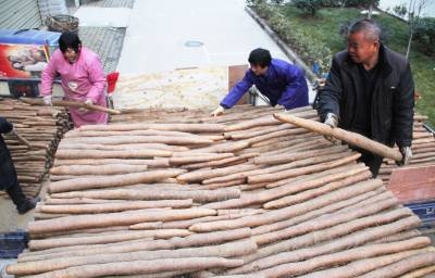 谷城山药俏销全国 2月6日,冷集镇农民正在集市上批发“绿色”山药,供应春节市场。谷城县冷集镇农民种植的2万亩山药,亩平产量3500公斤,产值达4亿元。由于该镇农民坚持无公害种植,山药俏销全国30多个大中城市。 视界网马明刚摄