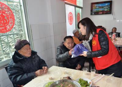 当天,由恩施土家族苗族自治州慈善总会发起、60多位爱心人士和志愿者的参与下,共筹集捐款29900元、专用洗浴躺椅和老人洗头车各1套(价值3934元)、棉衣86件(价值10100元)等,到地处鄂西土家山乡的恩施市白杨坪镇农村福利院举行“同心宴”活动,为老人派红包、发衣被、送温暖。 谭燮 摄 (文林推荐)