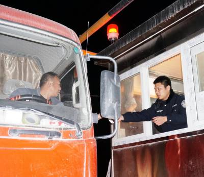 2月7日晚,十堰市郧阳区综合执法局的执法人员正式进驻杨溪铺镇干沟山沙场,对夜间21时至第二天早晨6时向市区运输山沙的100多台次运输车进行严控管理,要求所有车辆平箱装料,帆布覆盖,密闭运输,严禁在公路和市区街道上漏撒运输。 视界网周家山 摄