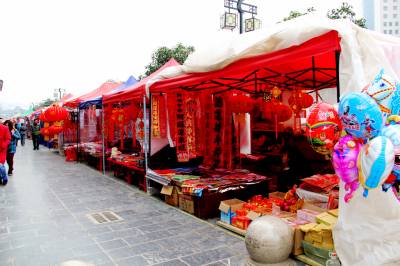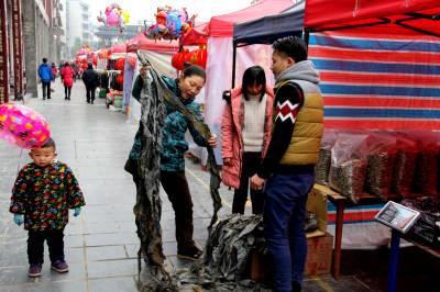 宣恩设置临时年货市场 2月9日,宣恩市民正在民族风情街临时设置的年货市场挑选年货。春节期间,该县在加强城市管理的同时,为方便市民和外乡回家过年的务工人员购买年货,县城管局城管执法大队在民族风情街设置临时摊位100个。据悉:临时年货市场将从古历腊月15日开始到大年三十结束,为期15天。 (本报视界网:罗清峰摄)