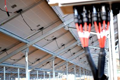 春节临近 十堰首家光伏并网发电高效示范园正加紧施工建设 2月9日,技术人员正在湖北省十堰市郧阳区柳陂镇卧龙岗移民社区农田里安装光伏线路。 春节临近,湖北省十堰市首家光伏并网发电高效示范农业园正在加紧施工建设,规划面积1400亩,总投资4.5亿元,建成后年发电收入4500万元,农业收入3500万元。 (供稿:湖北省十堰市郧阳区柳陂镇中心小学 杨显有 13277199605 442532)