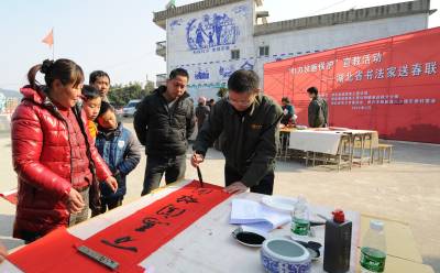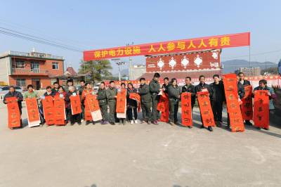 春节将至,外出务工人员陆续返乡,在超、特高压输电线路集中的阳新县,湖北省送变电工程公司与湖北书法家协会联合开展电力设施保护宣教和送春联进乡村活动,在为村民们讲解电力设施保护知识同时,把300副写有新春祝福的对联送乡村。