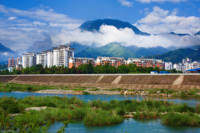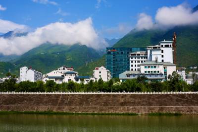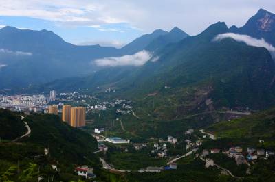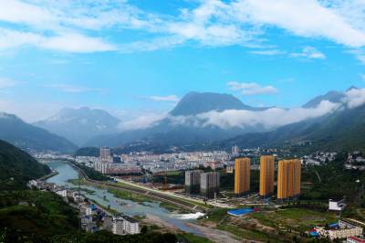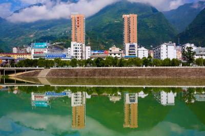 因三峡工程建设和三峡水库蓄水,老县城从2002年开始由高阳镇迁至古夫镇,一座崭新的、美丽的新城在之后的10年间于靠山邻水的古夫老集镇上拔地而起。图为2014-07-18拍摄的新县城古夫镇风光。